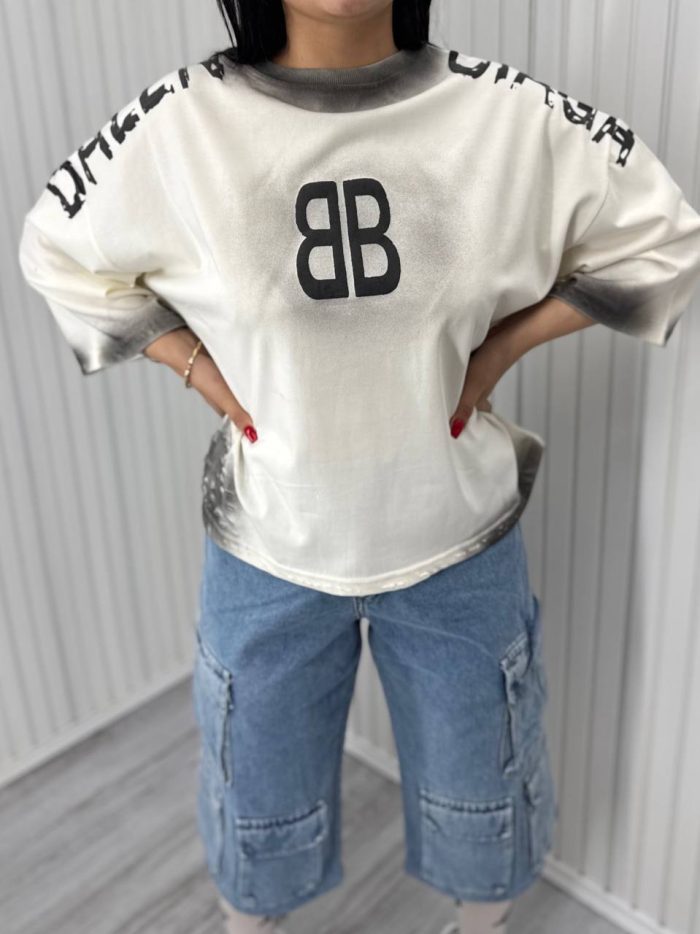 تیشرت باکسی بالنسیاگا زنانه در دو طرح آبرنگی و گلیتری.