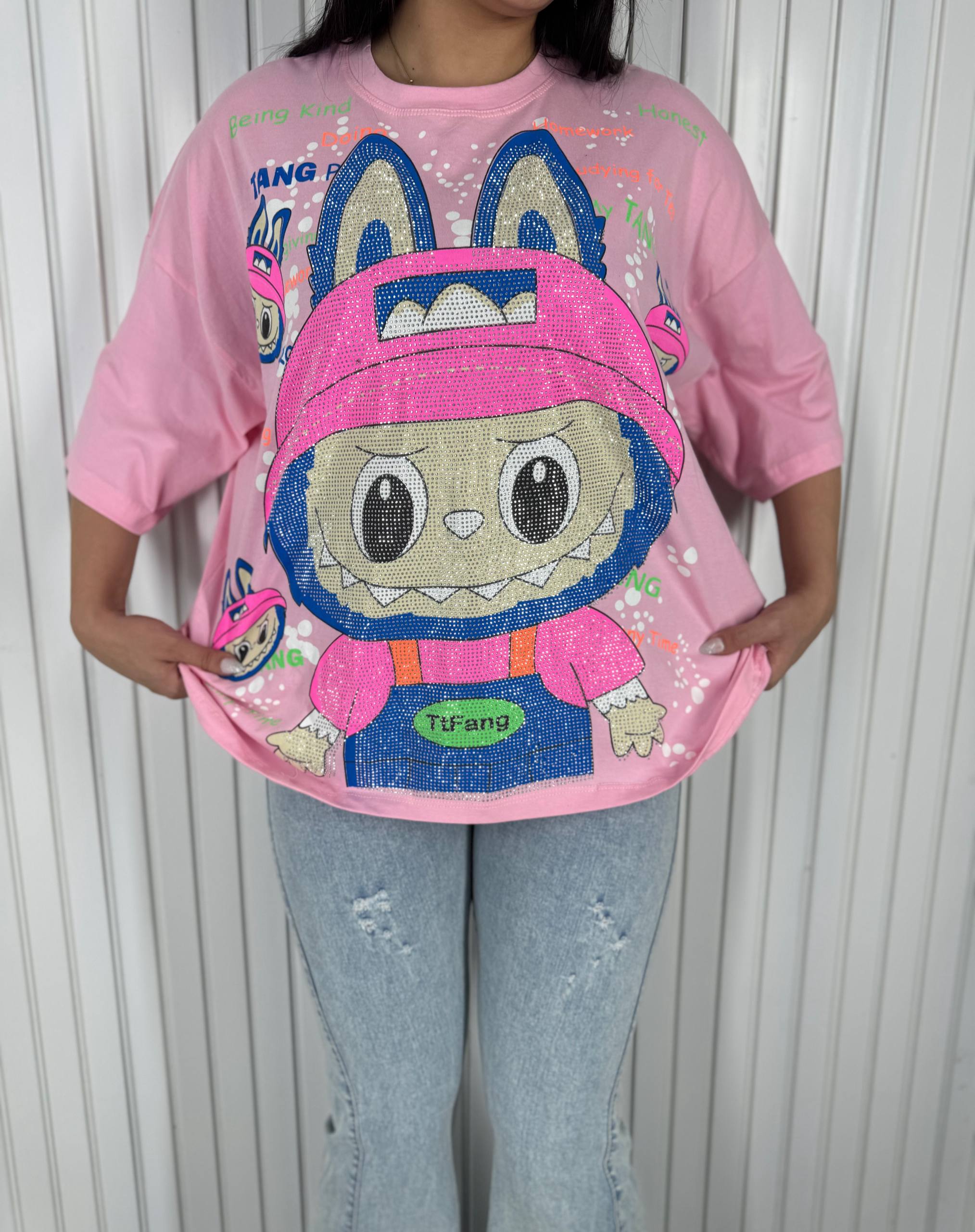 تیشرت نگینی LABUBU جذاب دخترانه در رنگبندیهای متنوع.