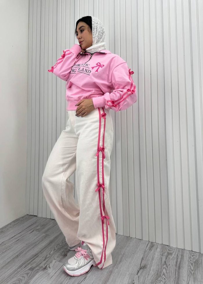 ست دورس شلوار پاپیون صورتی