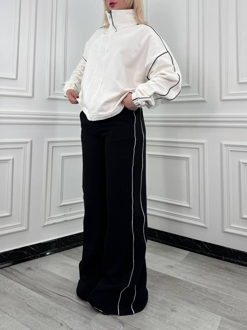 ست سویشرت نیم‌زیپ و شلوار مهلا کد 002012027