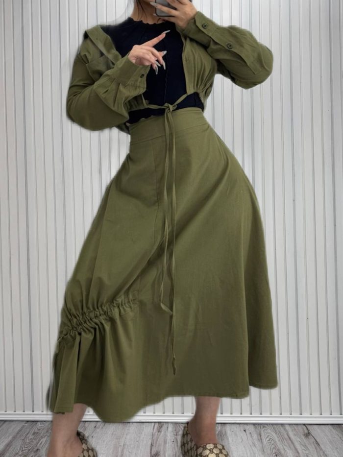 اگر به رنگهای خاص علاقه دارید، انتخاب نسخهی سبز یا خاکی این کار، یک ست زیتونی زنانه جذاب و متفاوت برایتان خواهد بود. ترکیب این رنگها با استایل مینیمال دامن و شومیز، جذابیتی بیانتها ایجاد میکند. علاوه بر این، این لباس به عنوان یک ست شومیز دامن دخترانه و حتی یک ست شومیز دامن زنانه برای تمام سلیقهها مناسب است. طراحی کوتاه شومیز و دامن بلند باعث شده که این محصول در قالب یک ست شومیز دخترانه نیز شناخته شود.