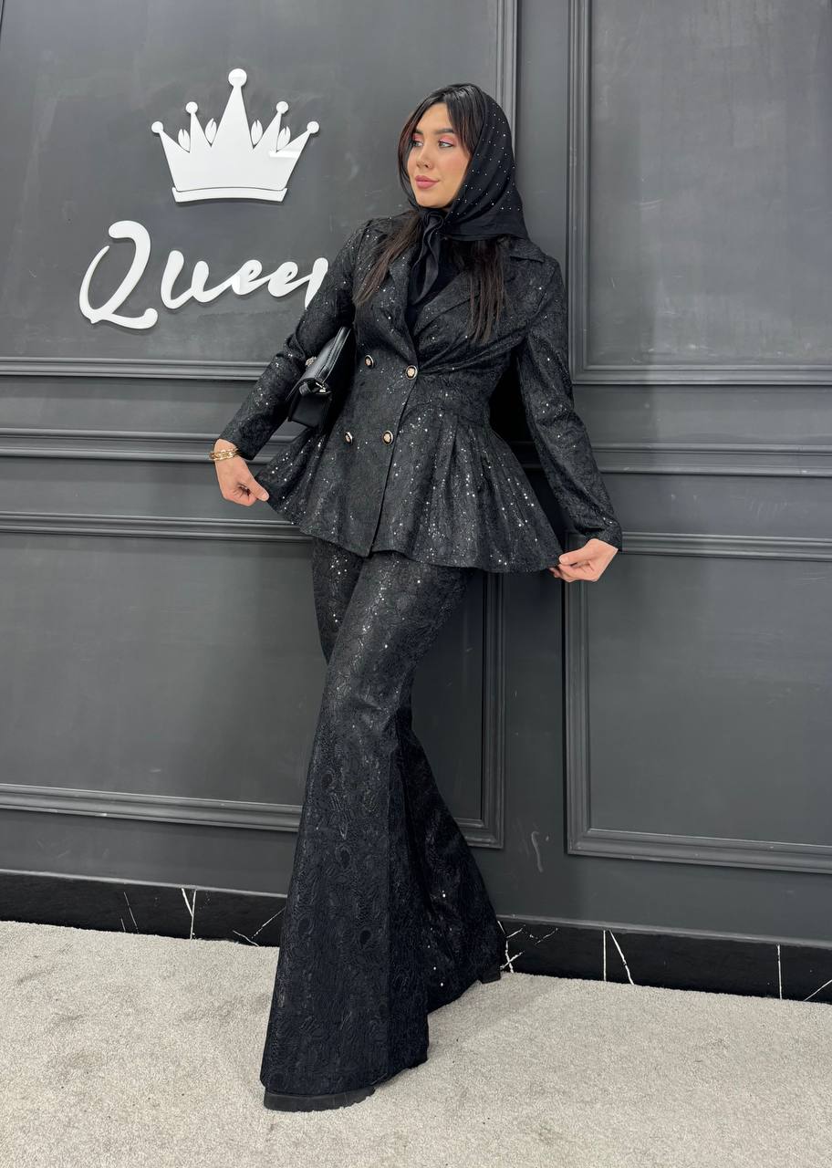 این کار بیتردید یک ست زنانه مجلسی درخشان است؛ مناسب جشنها، دورهمیهای مهم و موقعیتهایی که میخواهید خاصترین نسخهی خودتان باشید. برش کت با طراحی جذب در بالا و چینهای پهن در پایین، فرمی دخترانه و متفاوت ساخته و آن را به یک ست زنانه عروسکی شیک و خاص تبدیل کرده است. هماهنگی بینقص آن با شلوار جذب-دمپاگشاد، استایلی جذاب و مدرن ساخته که شما را به یک ست زنانه شیک کامل بدل میکند.