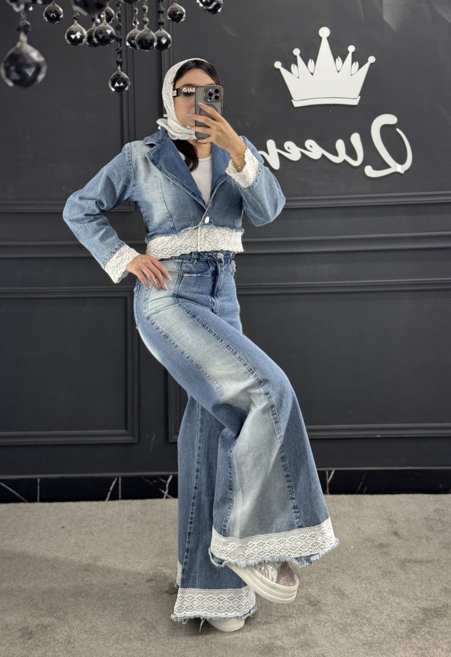 به علاوه، این ست برای کسانی که به دنبال یک استایل لوکس هستند، نمونهای از یک ست لباس دخترانه بیرونی و در عین حال یک ست لباس دخترانه لاکچری محسوب میشود. ترکیب جین و گیپور در طراحی، نهتنها شیک و خاص است بلکه در استایل خیابانی و روزمره هم کاربرد دارد. همین ویژگیهاست که آن را در ردیف انتخابهای مدرن برای یک ست لباس زنانه بیرونی قرار میدهد.