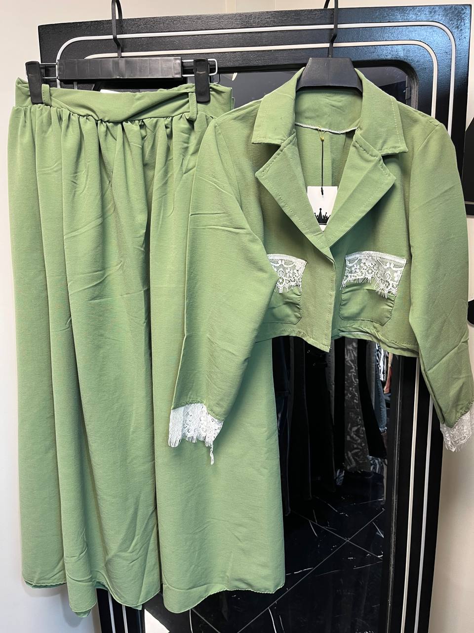 ست کت و دامن آستین جیب گیپور کد 00201479
