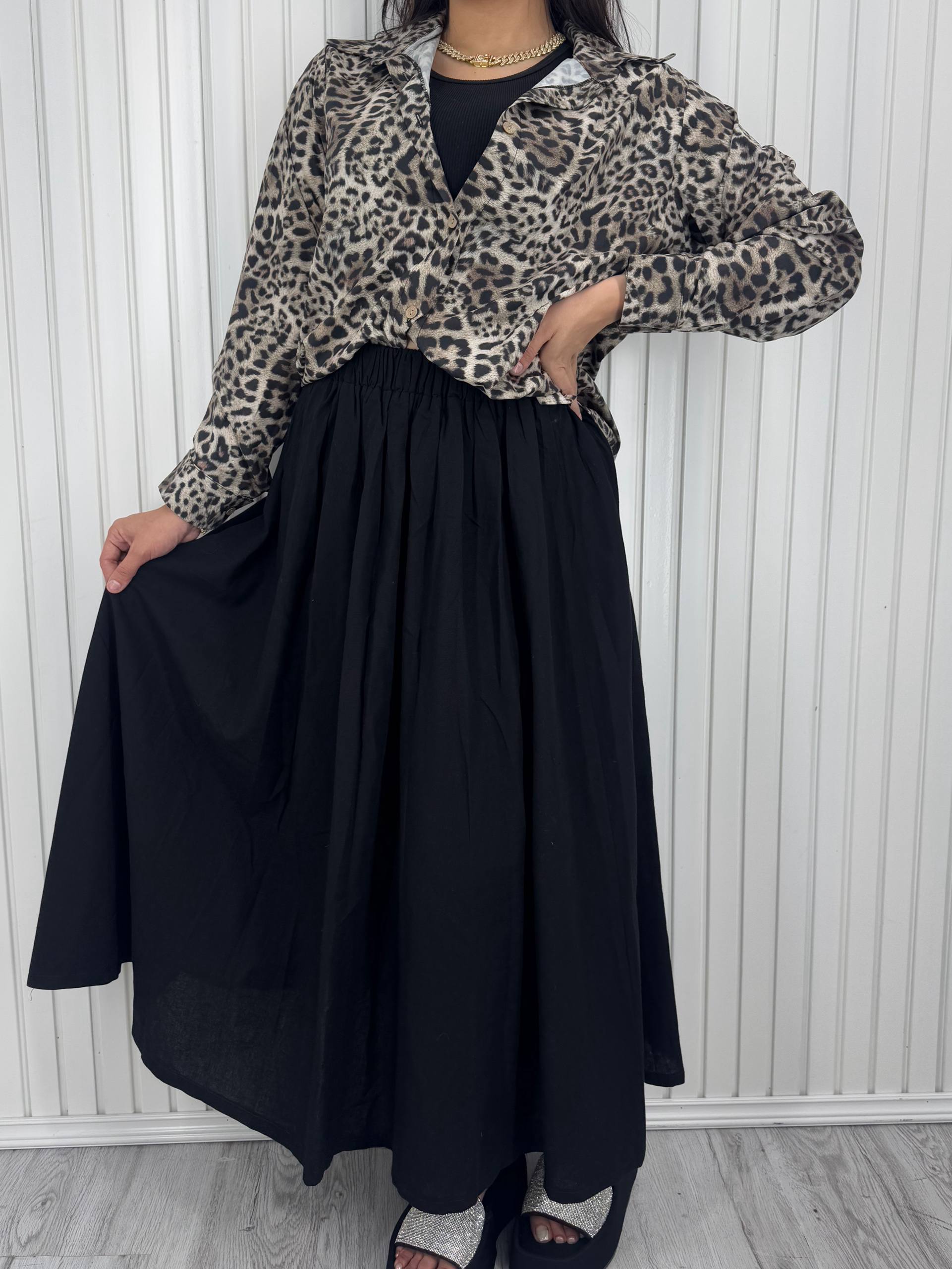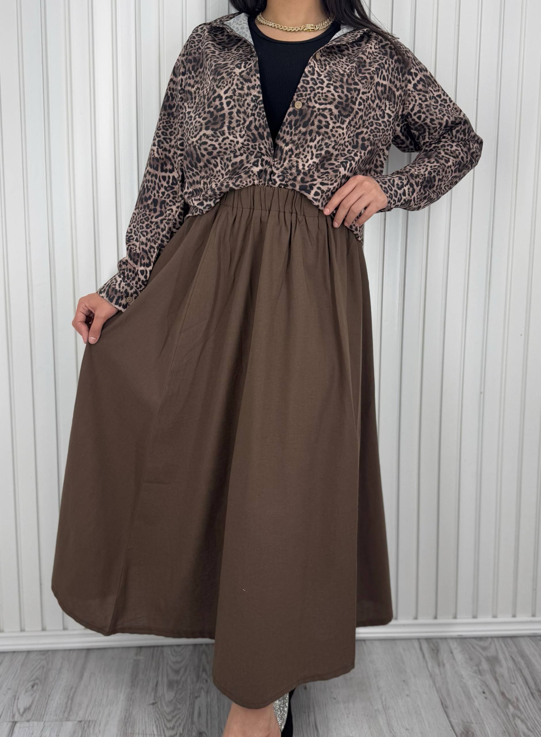 ترکیب خاص این محصول باعث شده که بهراحتی در دستهی یک ست زنانه شیک قرار بگیرد. شومیز کرپ حریر با الگوی طرح پلنگی و پارچهای سبک، در کنار دامنی خوشفرم از جنس لنین، جذابیت خاصی به استایل میبخشد. این طراحی در عین حال میتواند یک ست زنانه خانگی زیبا و راحت نیز باشد که برای استفاده روزمره کاملاً مناسب است.