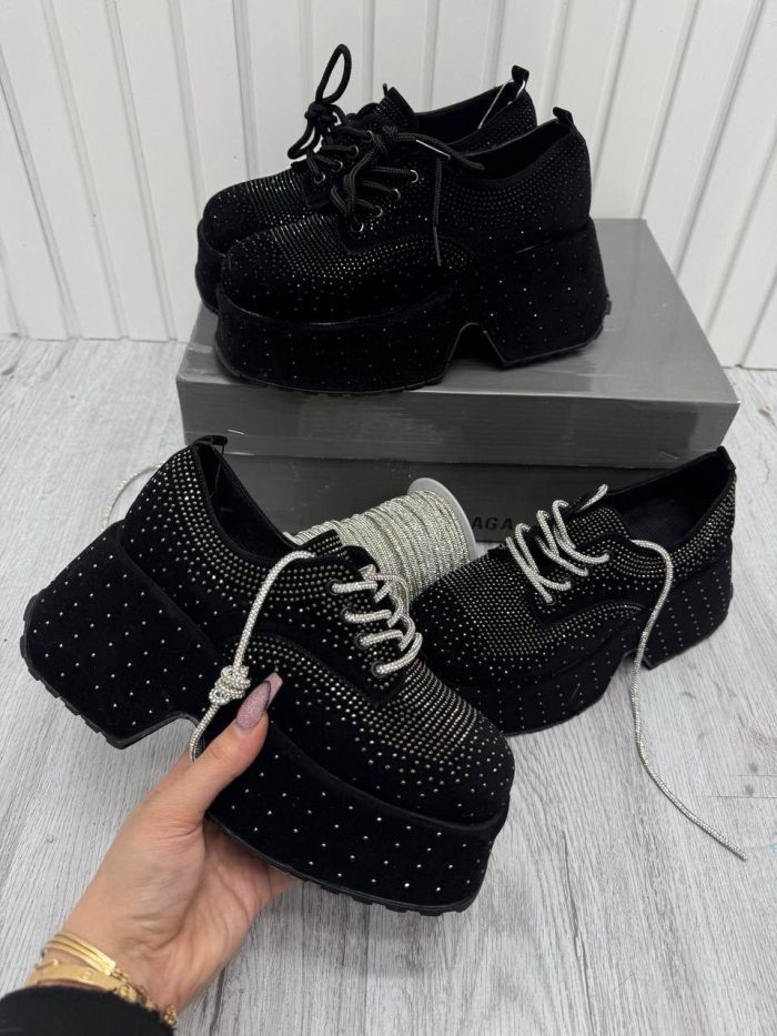 این مدل، کاملاً مناسب برای خانمهایی است که استایل شیک با قد بلند میخواهند، پس یک کتونی لژدار زنانه بهحساب میآید. ترکیب نگینهای نقرهای و زمینهی مشکی، یک کتونی لژدار مشکی دخترانه بسیار ترندی میسازد. و جزئیات ظریف روی رویه باعث میشود این مدل را بتوان یک کتونی ظریف دخترانه نیز دانست. ظاهر زیبای این کفش باعث شده یک کتونی شیک زنانه قدرتمند و یک کتونی شیک دخترانه دلبر باشد. با ترکیب اسپرت و رسمی، بهراحتی تبدیل شده به یک کتونی شیک اسپرت برای تیپهای روزانه و شبانه.