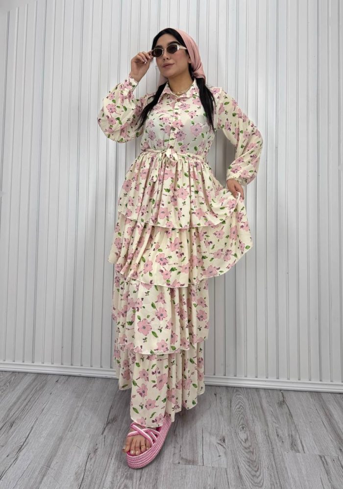 پیراهن طبقه ای حریر کمردار کد 00201852