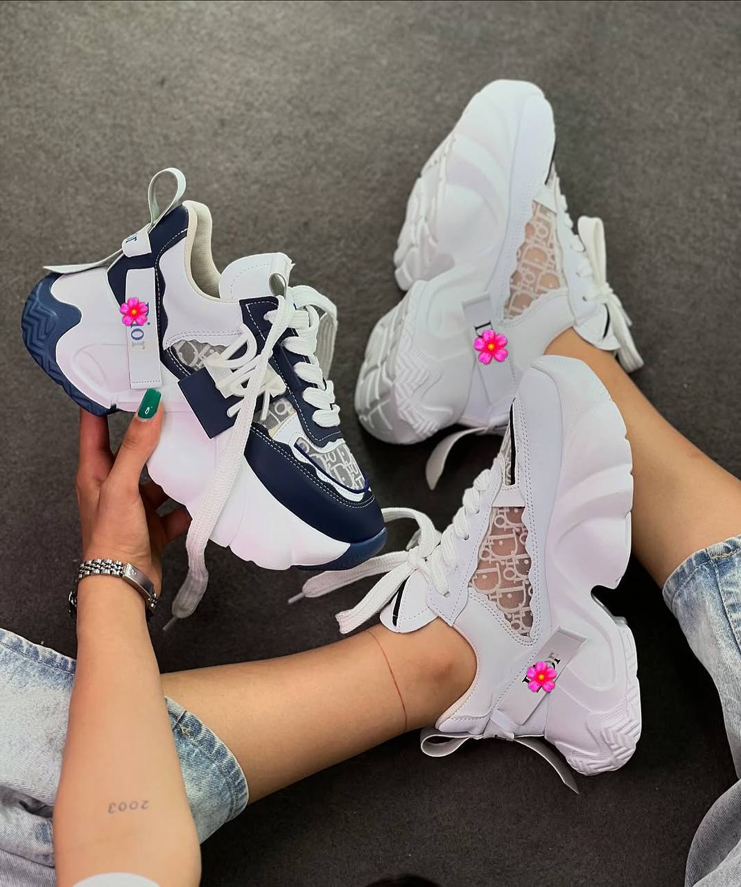 وجود طرح برند Dior روی توریها، باعث شده کفش کاملا یک کتونی دیور خاص باشد. چون ساختار آن فانتزی و دخترانه است، در دستهی کتونی عروسکی نیز قرار میگیرد. فرم زیبای آن در استایلهای خیابانی باعث شده یک کتونی فشن واقعی باشد. از نظر حس کلاسیک؛ لوگوی Dior، فرم پنلها و طراحی توری باعث شده رگههایی از یک کتونی کلاسیک نیز در آن دیده شود. و از همه مهمتر، این مدل دقیقا همان کتونی که امسال مد شده و همه به دنبالش هستند.