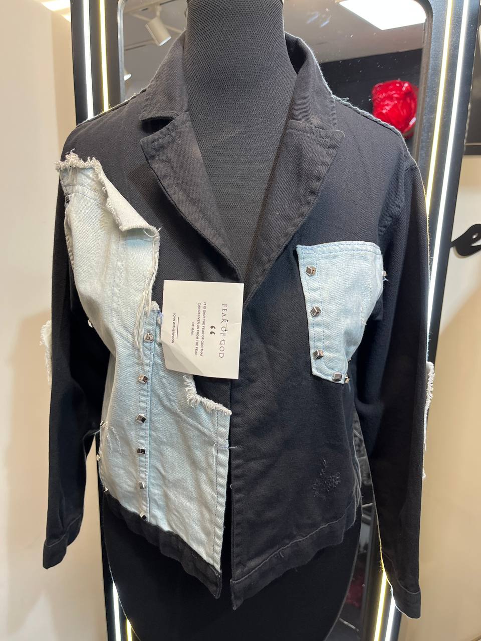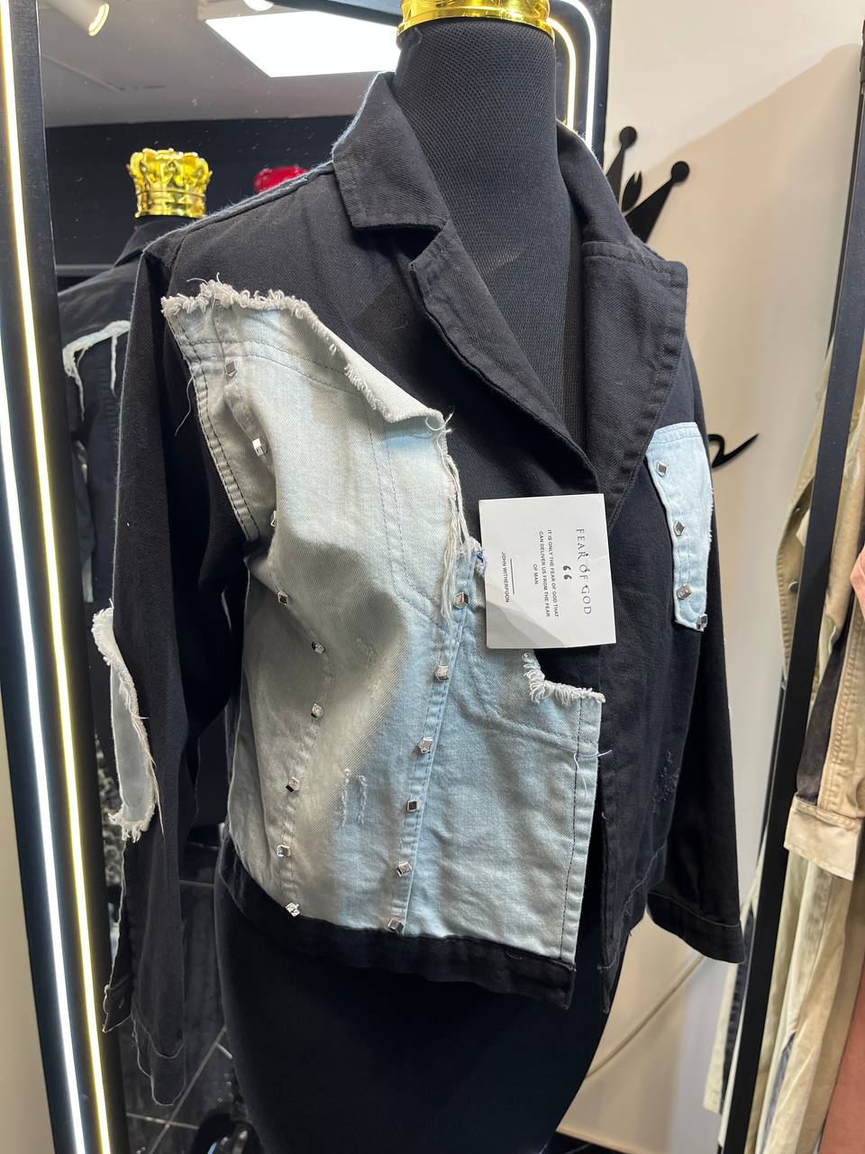 برش نامتقارن جلو، طراحی خاص جیبها و ترکیب رنگ مشکی با جین روشن، حس جسارت و خلاقیت را به استایل اضافه کرده است. این طراحی مدرن باعث شده این لباس در میان خاصترین کت تک زنانهها بدرخشد؛ لباسی که میتوان آن را با شلوار جین، لگ یا حتی دامن کوتاه ست کرد.