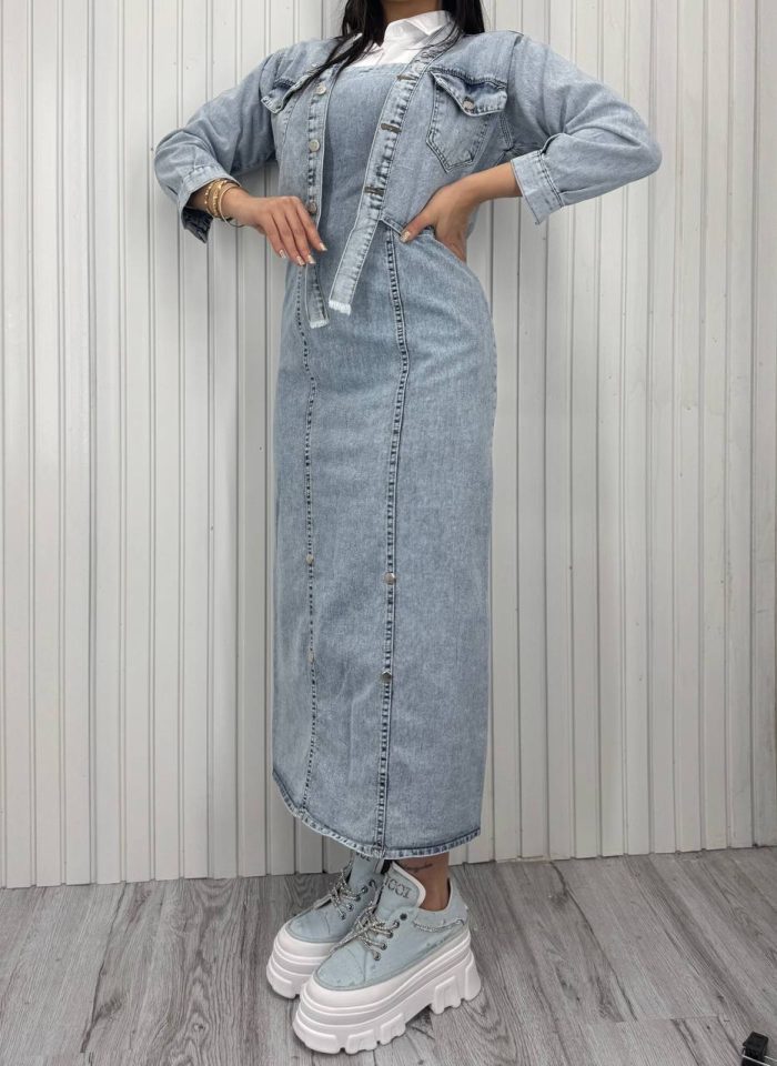 دوخت تمیز و برش‌های اسپرت لباس، جایگاه آن را به‌عنوان یک ست لباس اسپرت زنانه شیک تثبیت کرده است. همچنین جنس جین و طراحی مدرن، آن را به یک ست لباس لی دخترانه اسپرت جذاب بدل می‌کند. رنگ آبی آن نیز ظاهری اصیل و زیبا ایجاد کرده و به‌عنوان یک ست رنگ آبی کلاسیک بهترین انتخاب برای دختران خوش‌سلیقه است.