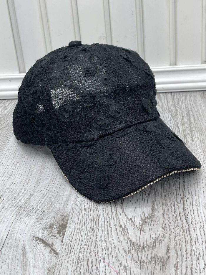 کلاه گپ نگین گیپور در چهر رنگ مشکی، صورتی، کرم و سفید.