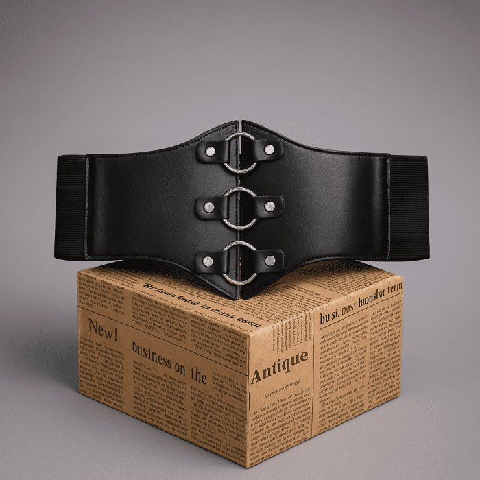 اگر شما هم برای مهمانی‌ها و مراسم به دنبال یک اکسسوری خاص هستید، این مدل بدون تردید بهترین انتخاب برای کمربند برای لباس مجلسی است. ترکیب چرم براق و قفل‌های فلزی، جلوه‌ی لباس را چند برابر می‌کند و به شما جذابیت خاصی می‌دهد؛ همان چیزی که از یک کمربند پهن زنانه مجلسی حرفه‌ای انتظار دارید.